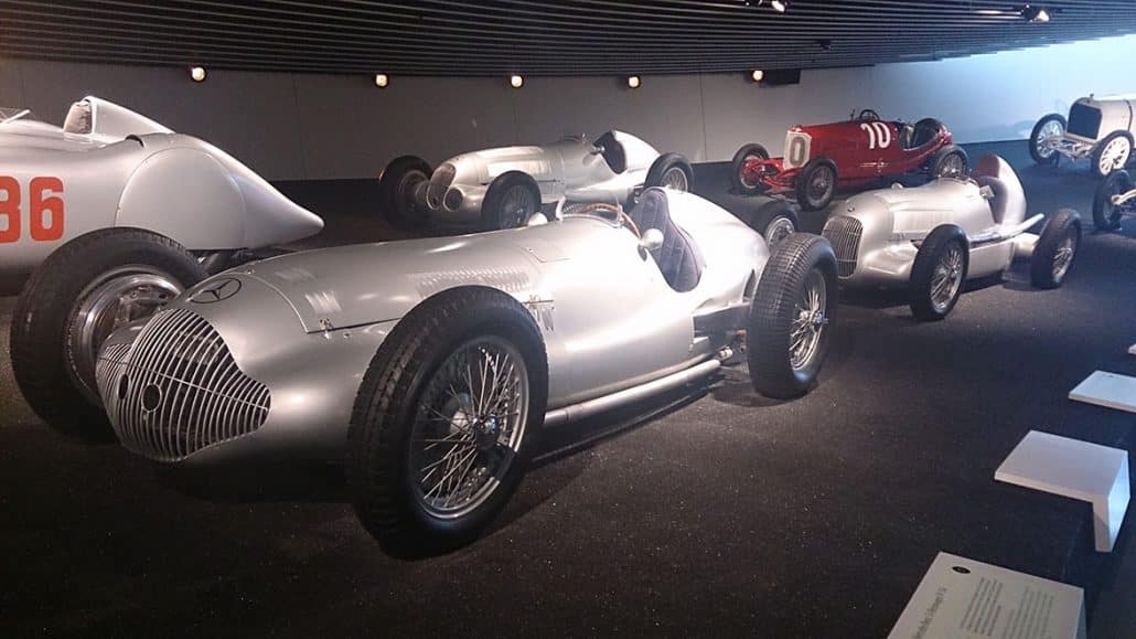 S’il n’y avait qu’un seul musée automobile à visiter, ce serait celui de Mercedes-Benz à Stuttgart. J’avais visité le premier musée Mercedes-Benz en 1998 que j’avais trouvé fort intéressant. L’actuel date de 2006 et fête donc ses 10 ans cette année. Il cumule tous les superlatifs : grandiose, magnifique, spectaculaire. Tout d’abord le bâtiment et son architecture sont très réussis aussi bien à l’extérieur qu’à l’intérieur. Ensuite la visite se fait de haut en bas comme dans un colimaçon géant avec deux ou trois plateaux d’exposition à chacun des sept niveaux. Cela permet de découvrir l’histoire de la marque mais aussi son évolution dans le contexte des différentes époques traversées.