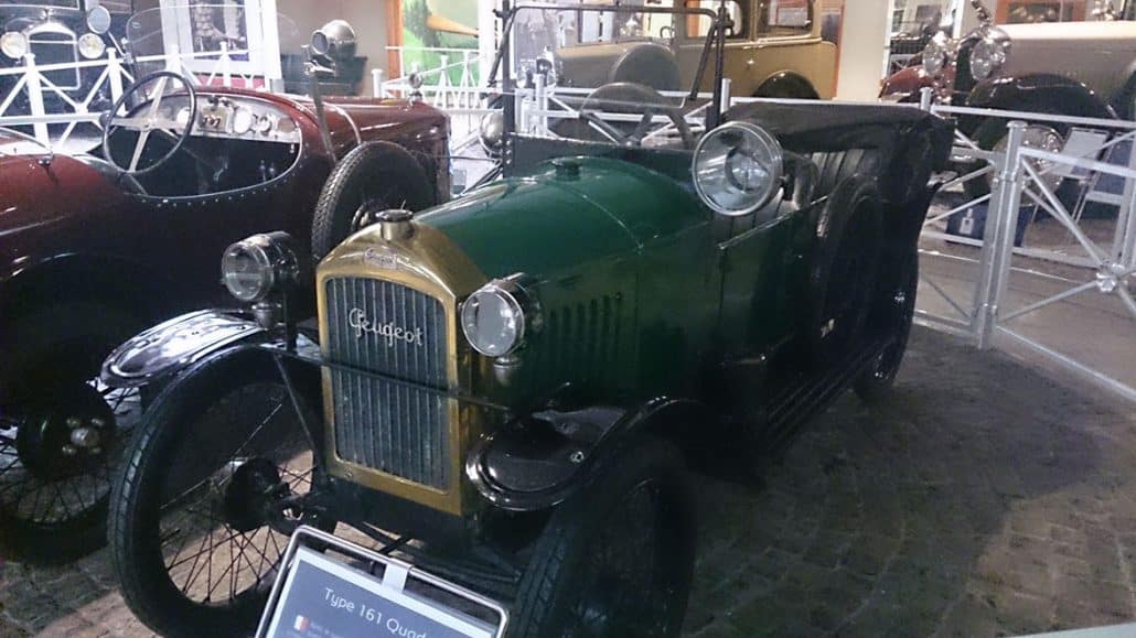 La visite démarre avec les outillages et les cycles Peugeot mais les premières automobiles apparaissent rapidement. Je considère que Peugeot est le plus vieux constructeur automobile en activité puisque la marque fabrique des voitures depuis 1889. Certains m’objecteront que Mercedes-Benz a démarré son activité en 1886. Ceci est vrai pour les firmes Daimler et Benz prises séparément. Mais le constructeur actuel Mercedes-Benz n’est apparu qu’en 1926 au moment de la fusion des constructeurs précités.